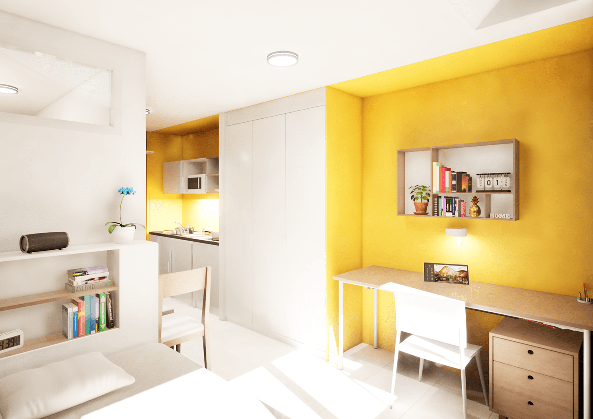 Conversion du bâtiment de recherche de l’ancienne ecole de chime en résidence étudiante de 102 chambres Maître d’ouvrage : Crous Statut du chantier : en cours Surface de plancher : 3 035 m² Montant des travaux : 3 900 000 €
